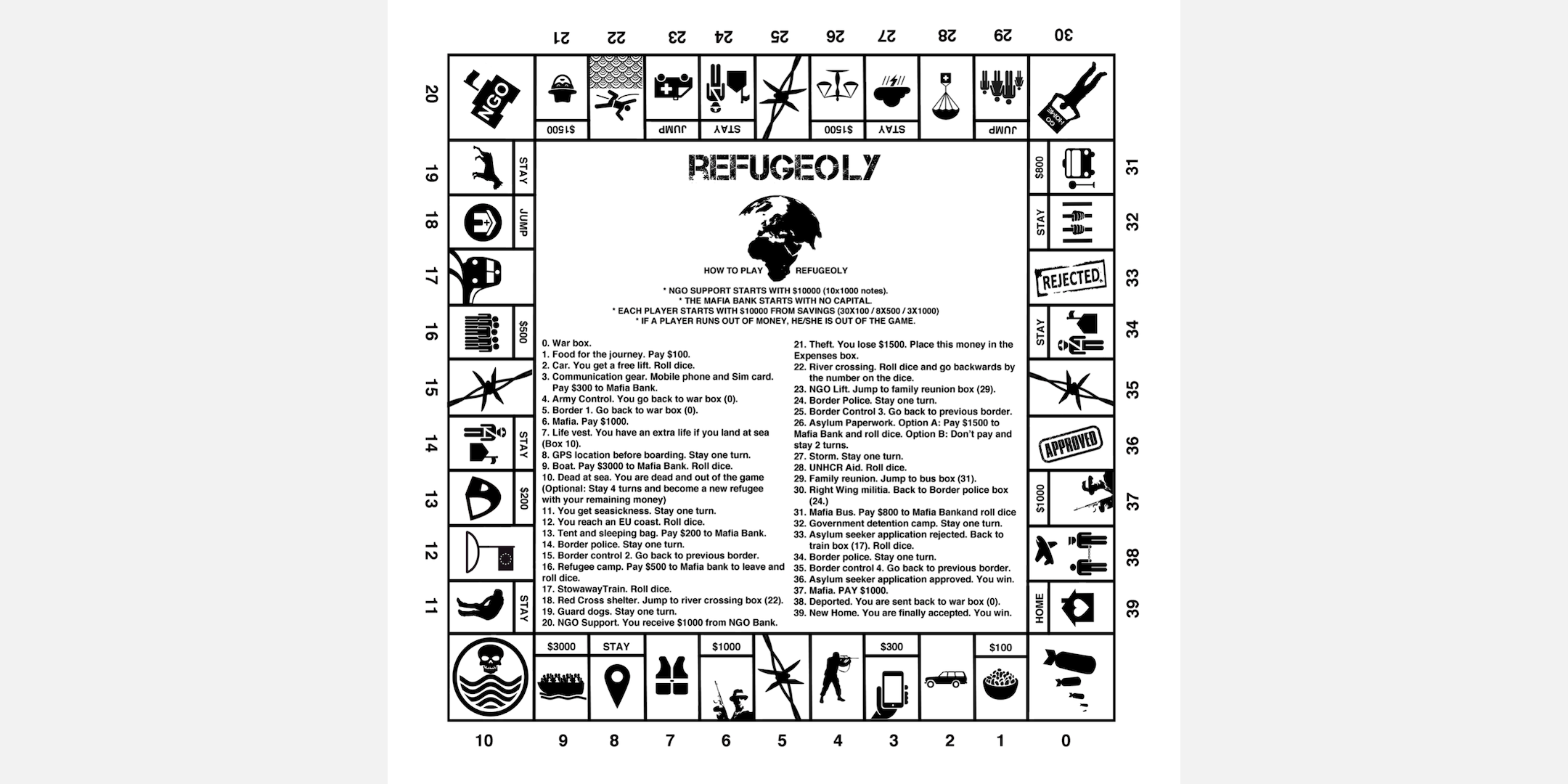 Juega como un refugiado mientras intentas encontrar el camino hacia la seguridad. Una poderosa herramienta lúdica creada por Vicente Esteban, diseñador y profesor asociado en el Departamento de Diseño de la Universidad Xian Jiatong-Liverpool (Suzhou, China). Este juego —basado en testimonios reales y en el clásico Monopoly— busca generar empatía y conciencia sobre la dura realidad de las personas desplazadas.